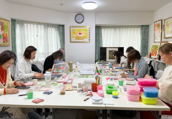 珍しく塩絵教室の参加人数が少なく、ゆっくりとのりこ先生とお話したりご指導いただけました。