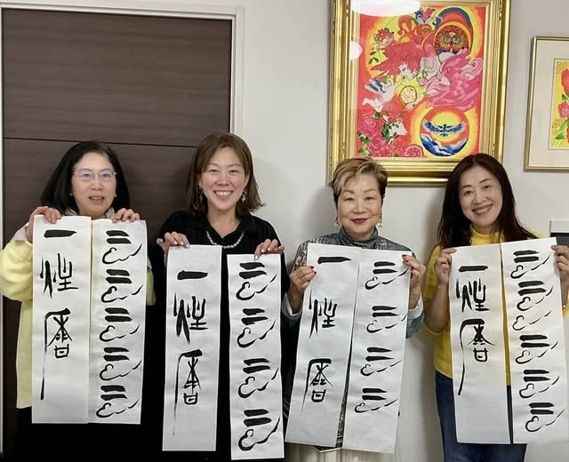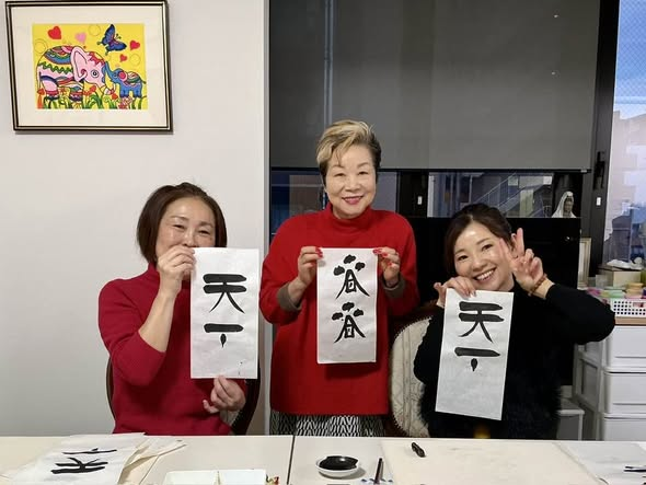 仕事始めは 書家でも有る白川先生の書道の教室 日本でも本格的に教えて居る先生はいるか居ないかと言われて居る篆書体 を学んで居ます 楷書体とは全く筆使いが違うので 時々頭混乱するけど めっちゃ面白くて楽しい たった三名なのに 元気100%のチフミちゃんの陰で 賑やかな教室でした 二人とも勘が良くて お上手 私...