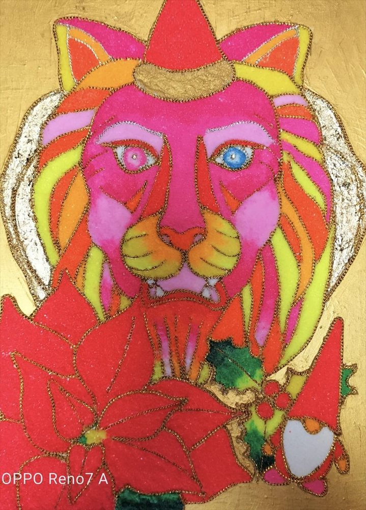 ライオンと真っ赤なポインセチア、赤色は、成功の色。
