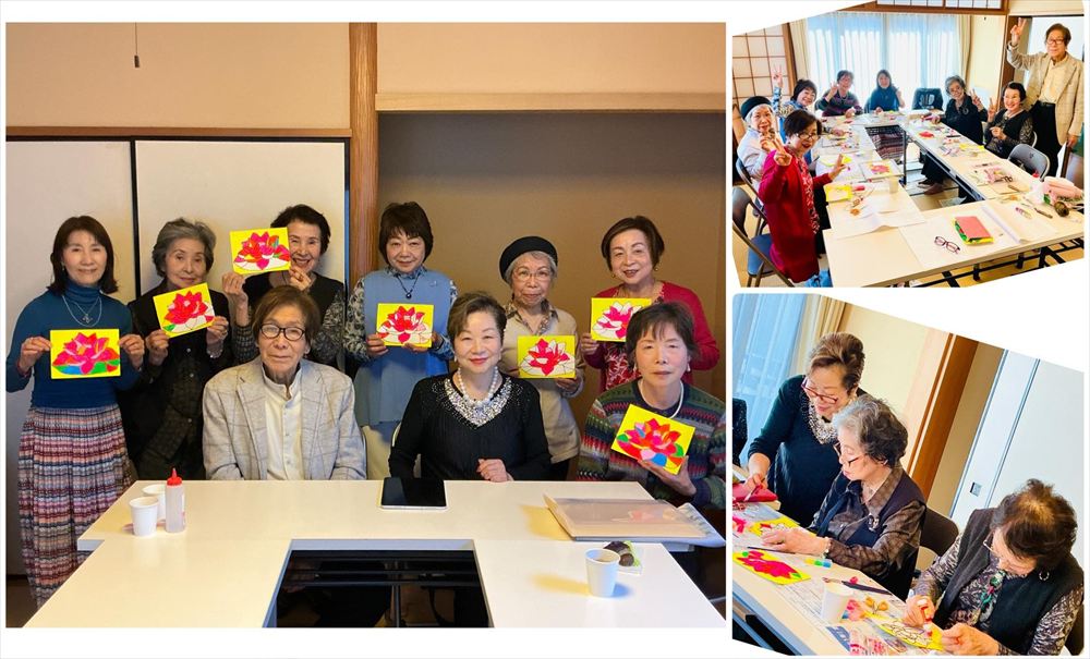 皆さん初めて描くはすの紐張りから塩絵の具を塗るまで